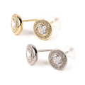 シンプルなフクリンタイプのスタッドピアス。飽きのこないデザインで1つは持っていたいアイテムです。1粒タイプのネックレスともセットでお使い頂けます。基本スペック:シリコンキャッチ付きキュービックジルコニア H&Cジルコニア [サイズ]中石5.25mm 0.5ct相当 脇石1mm ×2嬉しい両耳価格![カラー]プラチナ仕上げ(ロジウムコーティング)ゴールド仕上げ(K18コーティング)*キュービックジルコニアは人工石です