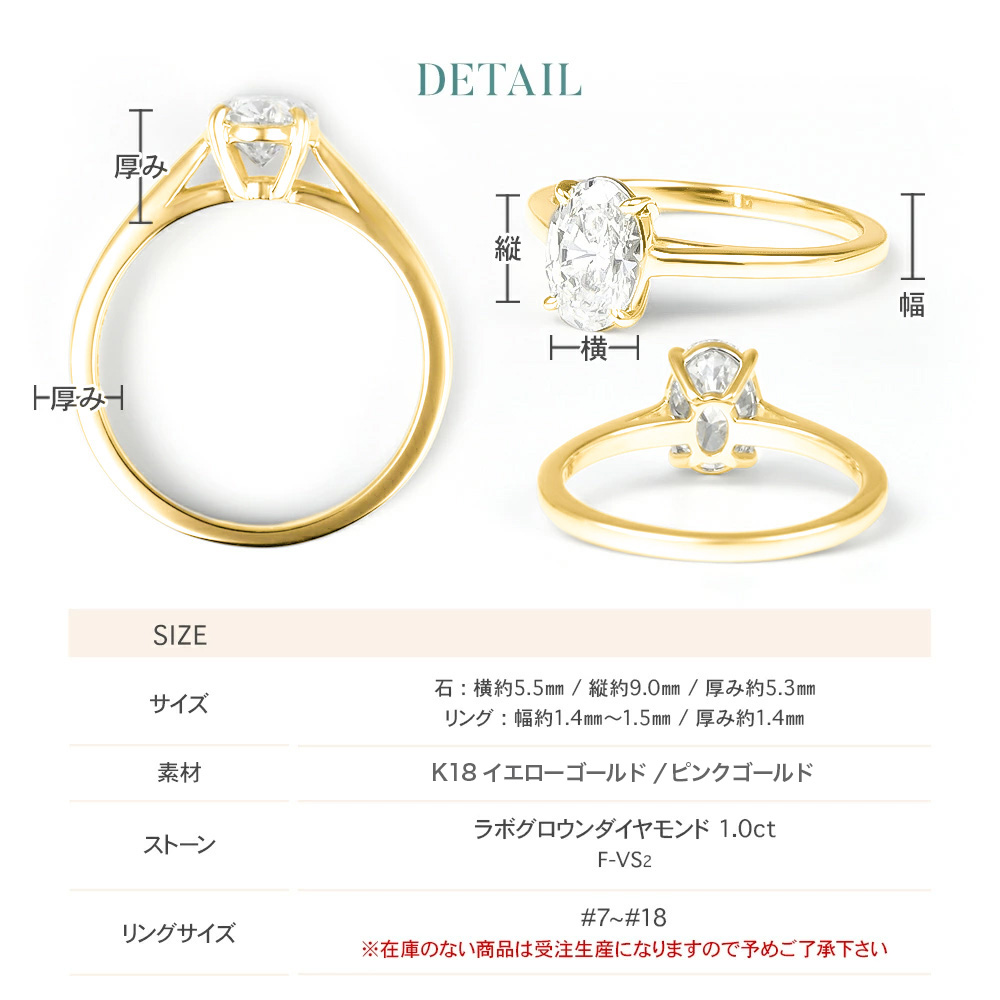 《SIZE》| サイズ | 石:横約5.5mm / 縦約9.0mm / 厚み約5.3mm リング:幅約1.4mm~1.5mm / 厚み約1.4mm |
