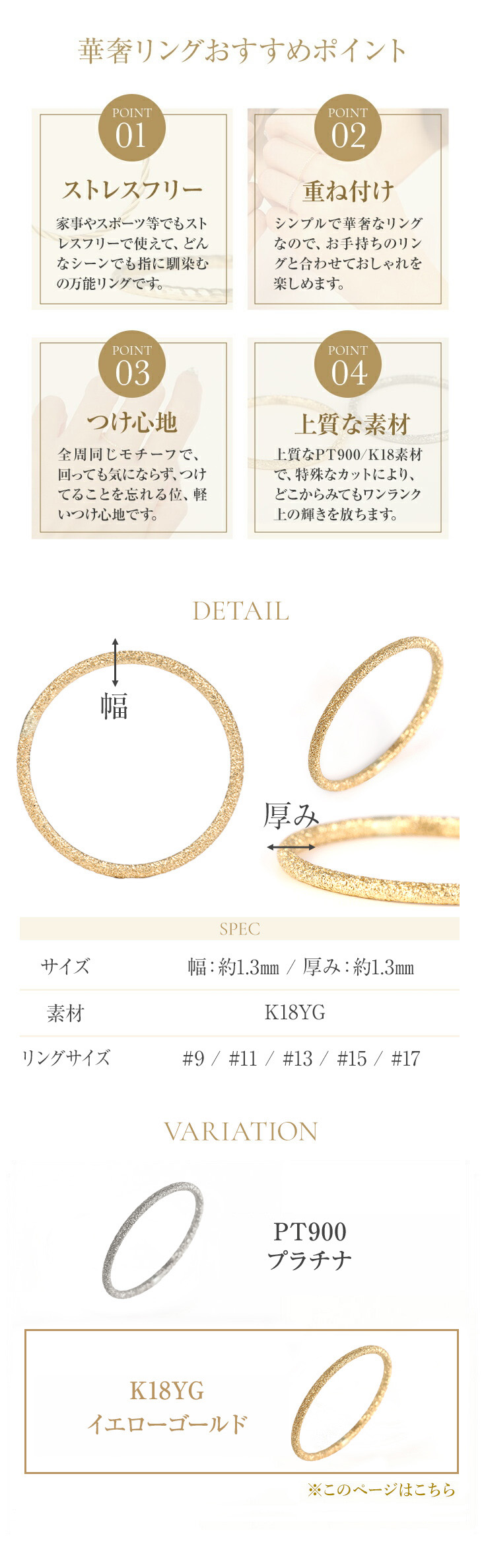 リング幅:約1.3mm 厚み:約1.3mm