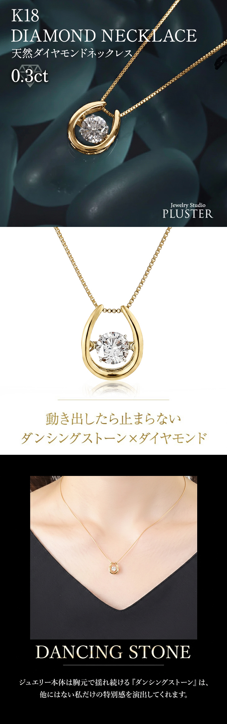 金性:18金(K18) 石目:ダイヤモンド 0.30ct 鑑別カード付き 基本スペック ネックレス全長 約45cmフリータイプ トップ:縦約10.0mm 横約8.0mm 厚み約4.0mm チェーン:ベネチアンチェーン/チェーン幅:約0.60mm 【鼓動で揺れる 正規クロスフォー】世界中の女性を虜にするDancing Stone 。クロスフォー社よりライセンス提供を受けた正式なコンポーネントを使用しているから安心。 【厳選されたダイヤモンド】鑑定士が輝き・テリの良い天然ダイヤを厳選してお届け。シンプルなデザインながら贅沢なK18のダイヤモンドネックレスは、ご自身へのご褒美はもちろん、彼女や妻へのプレゼントなど、特別な贈り物としておすすめです。 【無料ギフト包装】クリスマス プレゼント・プロポーズ・誕生日プレゼント・結婚のお祝いや記念日に。またバレンタイン のお返し・母の日・出産後のギフトに、お嬢様への卒業や入学のお祝いなどのプレゼントとしても人気の商品です。 上質でシンプルなダイヤネックレスは、普段使いのカジュアルなスタイルからパーティーシーンまで幅広く活躍してくれます。 10代・20代・30代・40代・50代・60代と幅広い世代に好まれます。