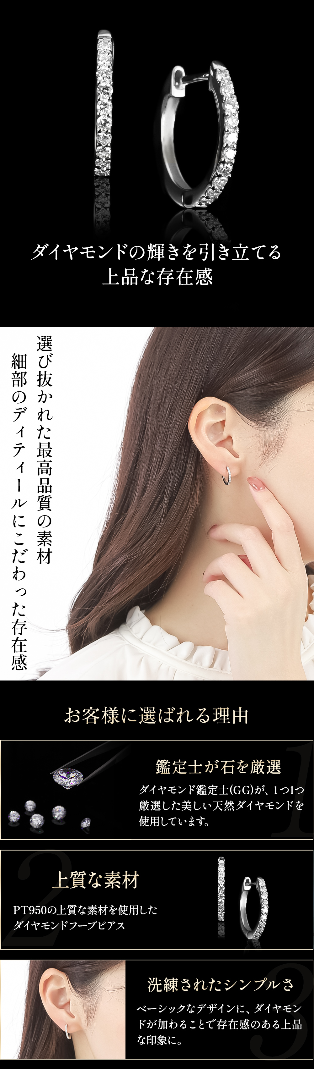 | 喜びポイント | シンプル 大人 可愛い かわいい 人気 お揃い 綺麗 キラキラ おしゃれ お洒落 オシャレ トレンド おすすめ 上品 上質 高級 プチプラで高見え アクセント 定番 プレミアムコレクション プラチナダイヤモンドピアス PT950 プラチナ950 普段使い ファッションピアス プロポーズ 婚約 結婚 記念日 金属アレルギー アレルギーフリー 金属アレルギー対応 ノンアレルギー つけっぱなし |