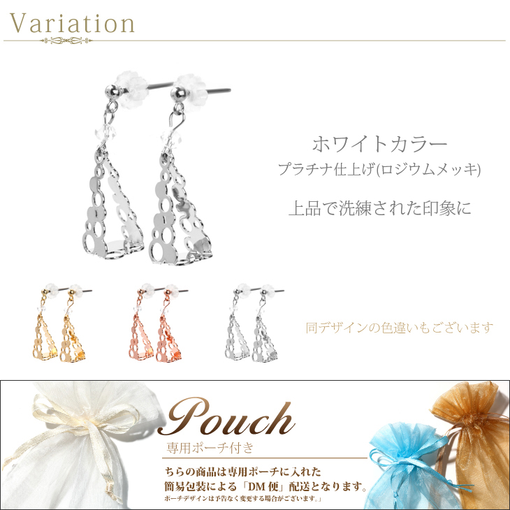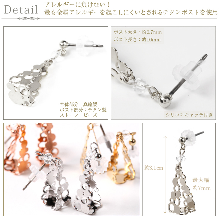| サイズ | ポスト太さ 約0.7mm ポストの長さ 約10mm 全長 約3.1cm 最大幅 約7mm |