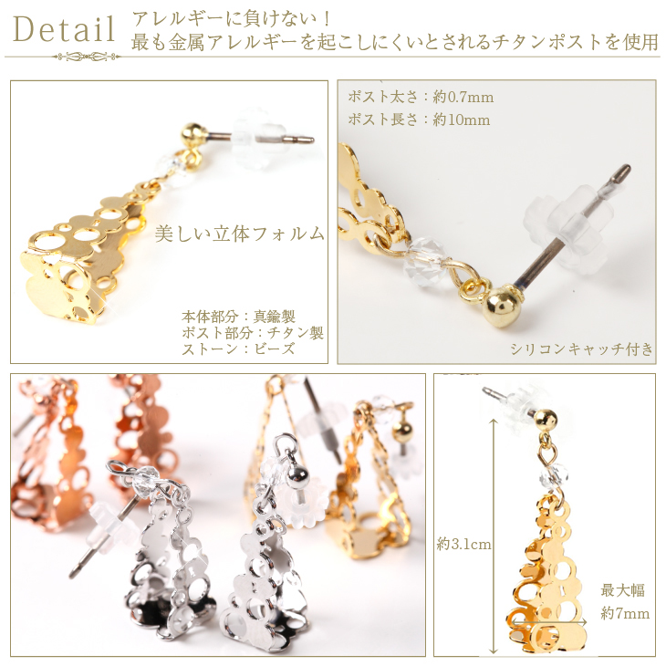 | サイズ | ポスト太さ 約0.7mm ポストの長さ 約10mm 全長 約3.1cm 最大幅 約7mm |