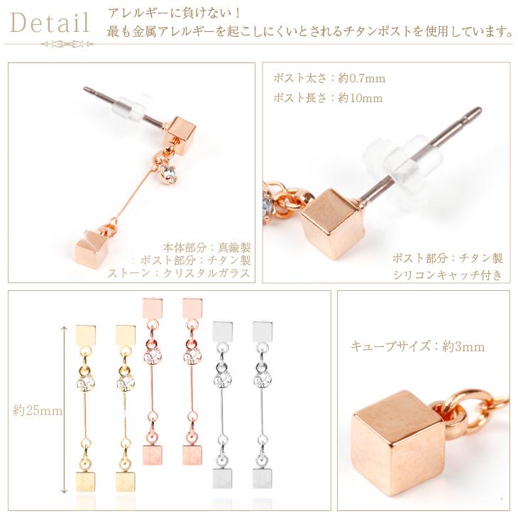 | サイズ | ポスト太さ 約0.7mm ポストの長さ 約10mm 全長 約25mm キューブサイズ 約3mm |