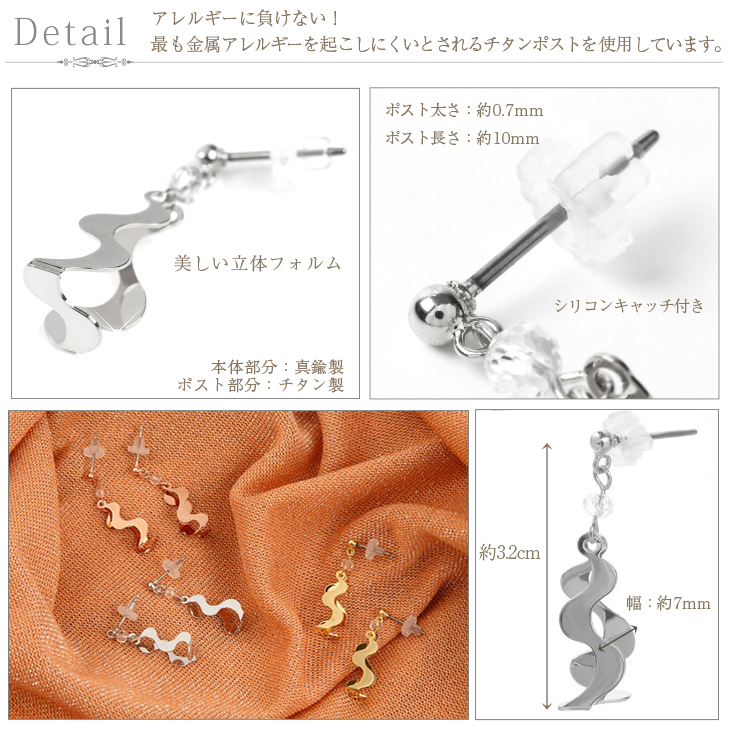 | サイズ | ポスト太さ 約0.7mm ポストの長さ 約10mm 全長 約3.2cm 最大幅 約7mm |