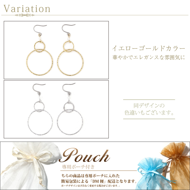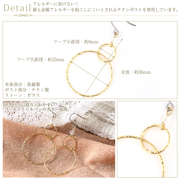 | サイズ | ポスト太さ 約0.7mm 全長 約36mm フープサイズ 小:約9mm 大:約22mm |