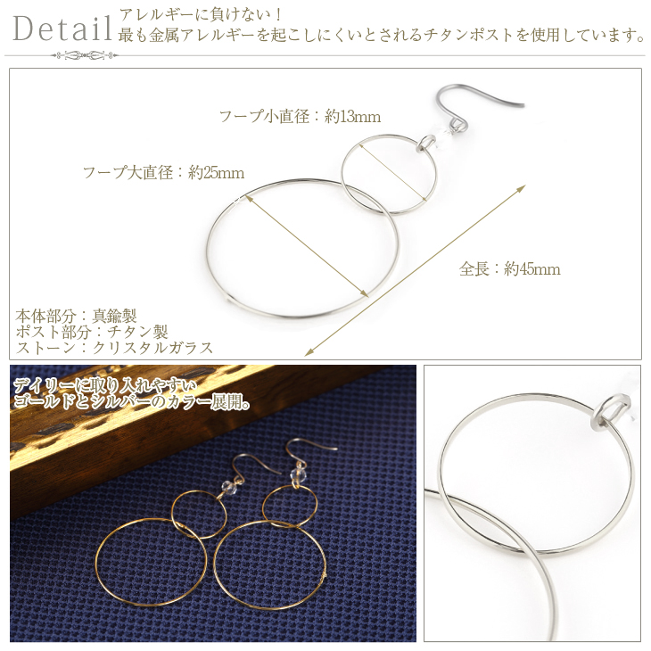 | サイズ | ポスト太さ 約0.7mm 全長 約45mm フープサイズ 小:約13mm 大:約25mm |