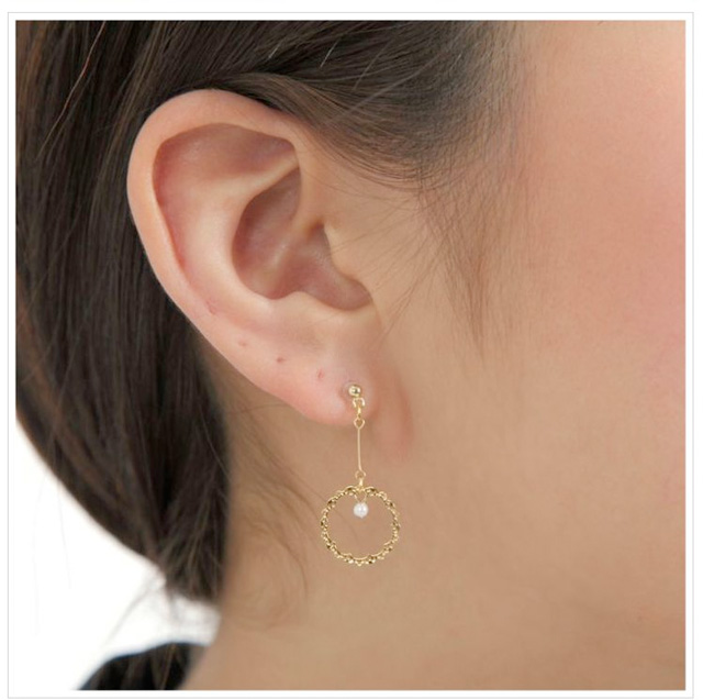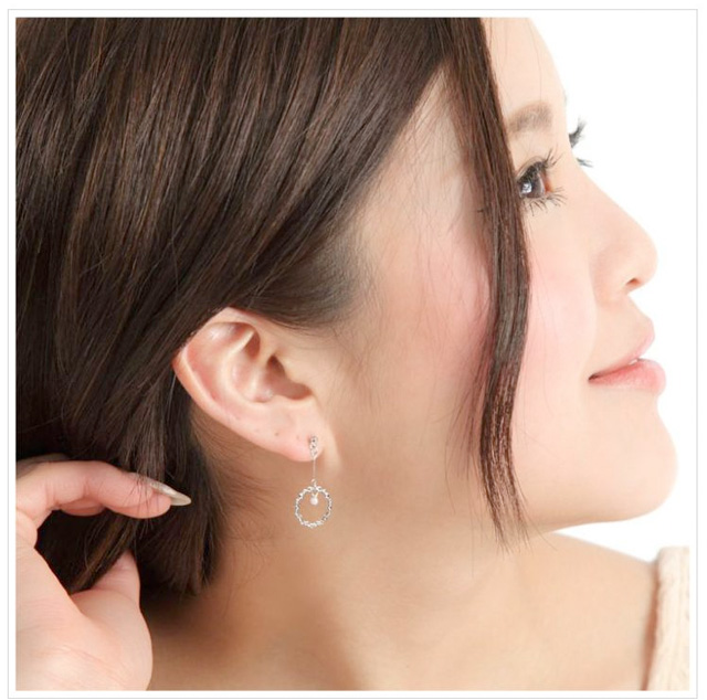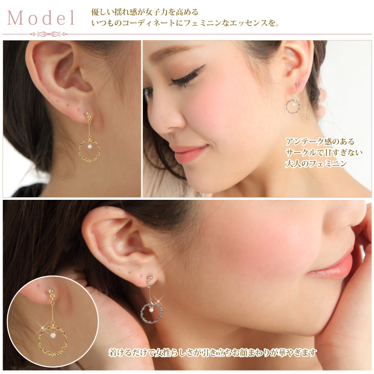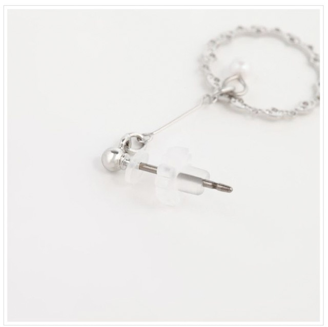 | サイズ | ポスト太さ 約0.7mm ポストの長さ 約10mm フープのサイズ 最大約13mm 全長約30mm P-パール 約2mm |