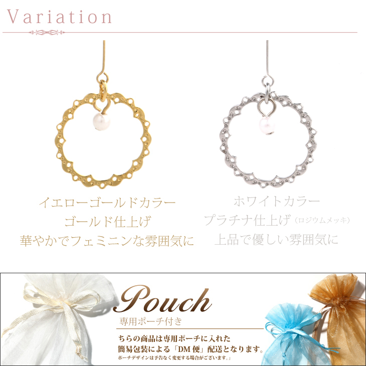 | カラー | プラチナ仕上げ(ロジウムメッキ)のホワイトカラー ゴールド色仕上げのイエローゴールドカラー の2種類 |