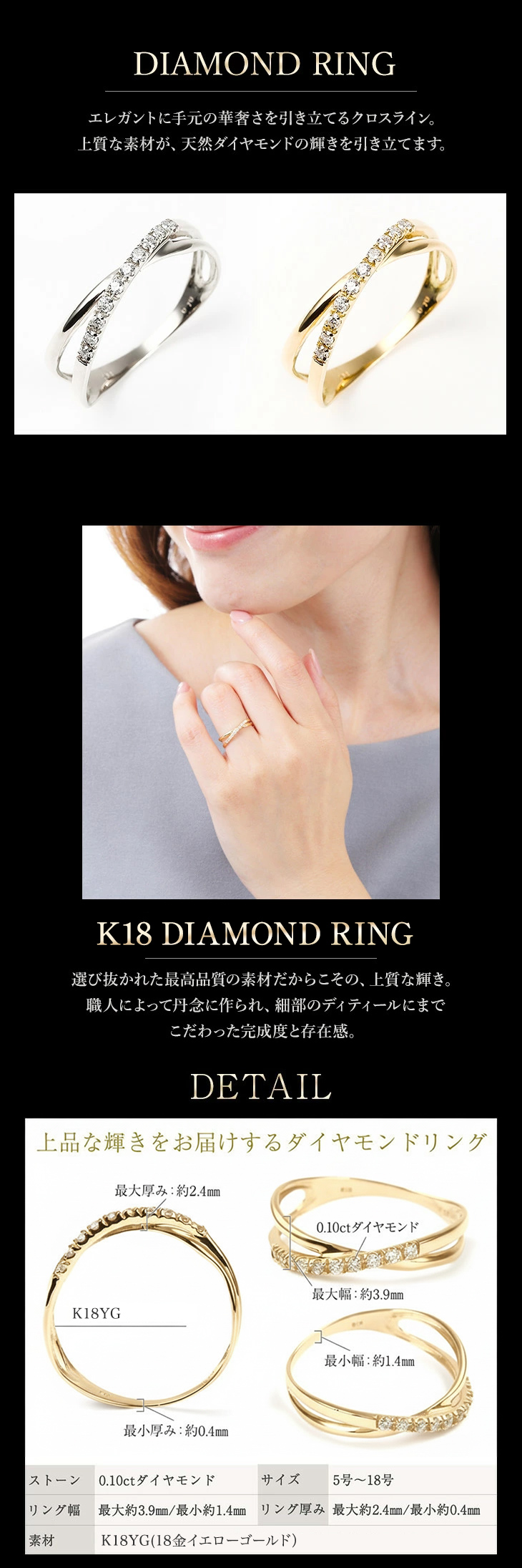 リング厚み 最大厚:約2.4mm 最小厚:約0.4mm