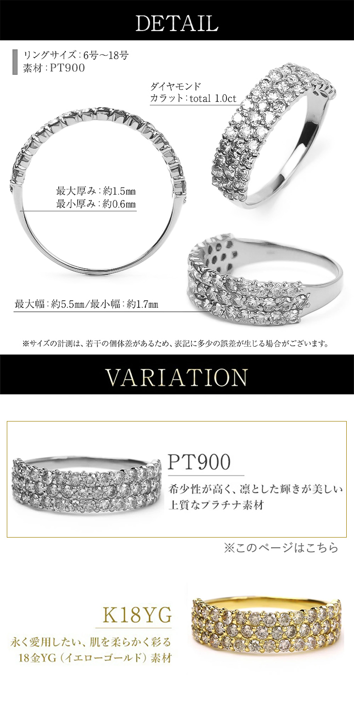 ダイヤモンドをトータル【 1.0ct 】使用した贅沢なダイヤリング。シンプルながら存在感とボリュームのあるデザイン。精巧なカットの美しさだけでなく、光を最大限取り込み、つけ心地にもこだわりました。「 ダイヤの指輪 」は、女性に喜ばれる、人気の指輪。大切な妻へ、奥さんへ、記念日の贈り物やギフト・プレゼントとしてもおすすめです。