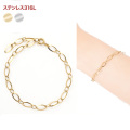 上品な輝きの美しいエレガントなチェーンブレスレット。艶感のある細めの地金がしなやかに動き、女性の手首を華奢に細く見せてくれます。シンプルなデザインで、重ね付けや、ネックレスやピストとのセットアップジュエリーとしてもおすすめです。「 ステンレス 316L 」は金属アレルギー対応で、お肌に優しく安心です。