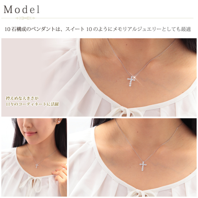 いつも身に着けていたい定番モチーフ。甘さを抑えたクロスは日々のコーディネートに活躍。 Tシャツやデニムなどのカジュアルスタイルから、上品なワンピース、かっちりとしたスーツまで、様々なスタイルと好相性。 |