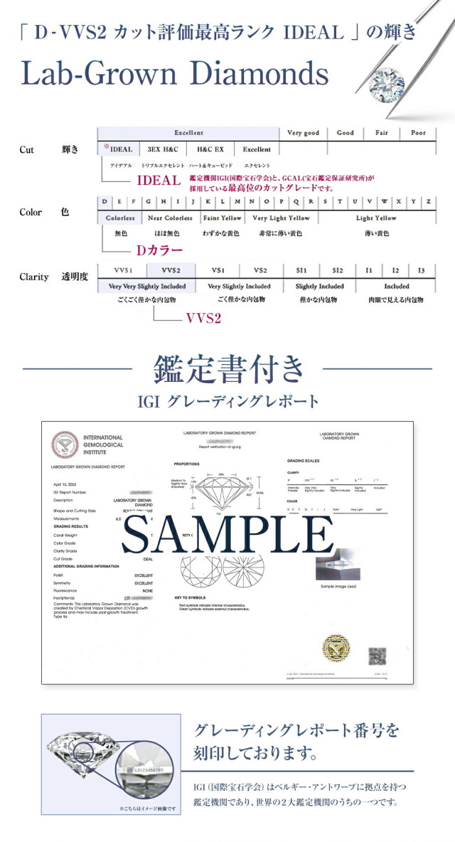 | ストーン | ダイヤモンド ラボ・グロウン・ ダイヤモンドは最新テクノロジーが生み出した合成ダイヤモンドです。 |