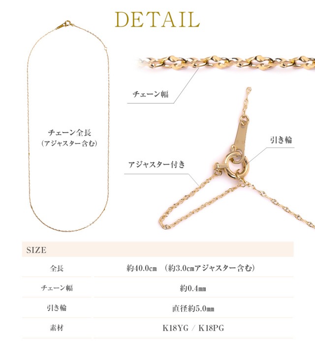 チェーン幅:約0.4mm / 引き輪:直径約5.0cm