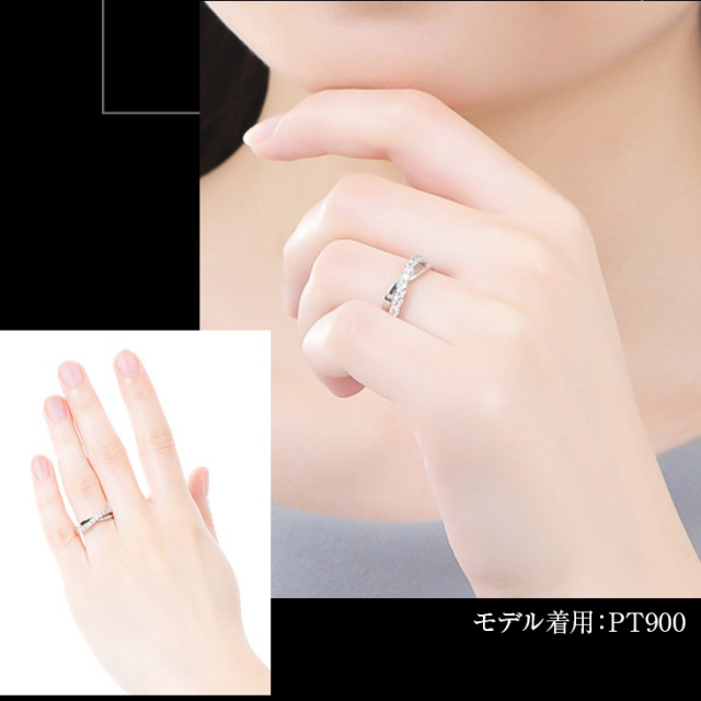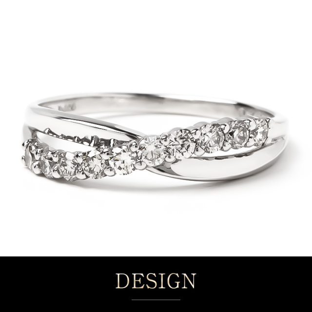 天然ダイヤモンド10石を配置した柔らかなクロスラインは、女性の指を長く、細く見せてくれます。プロポーションの美しさだけでなく、光を最大限取り込み、つけ心地にもこだわりました。