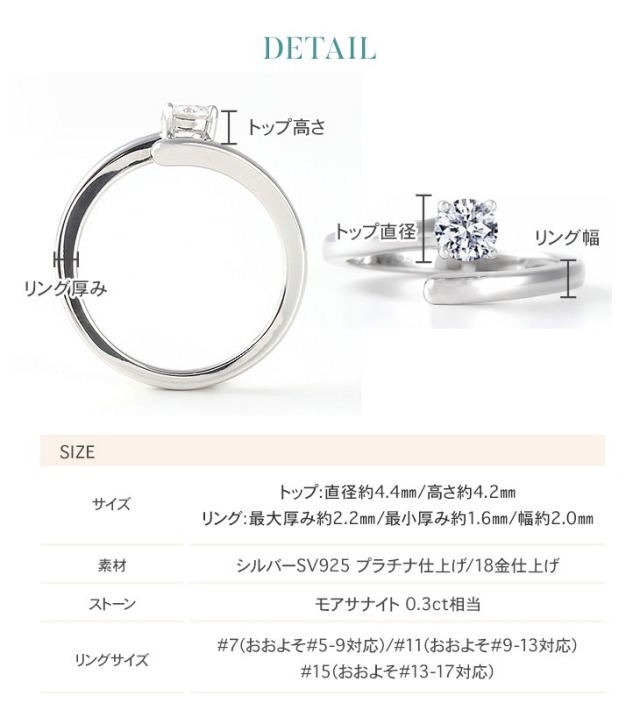 | 素材 | シルバー SV925 プラチナ仕上げ(ロジウムコーティング)/18金仕上げ(18金コーティング) |