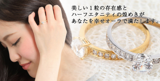 | ストーン | H&Cキュービックジルコニア使用 Atype.1粒ハーフエタニティリング 直径:約5.25mm×1石 直径:約1.5mm×12石使用 リング幅:約2.2mm Btype.ハーフエタニティリング 直径:約2.0mm×15石使用 リング幅:約2.0mm |