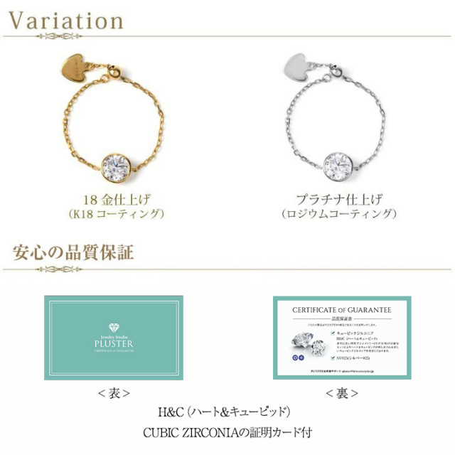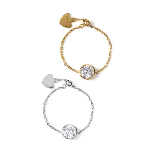 パーティジュエリーとしても最適です。 金性:SV925 プラチナ仕上げ(ロジウムコーティング) 18金仕上げ(K18コーティング) 基本スペック:21号まで対応可能なフリーサイズのチェーンリングです。 *キュービックジルコニアは人工石です