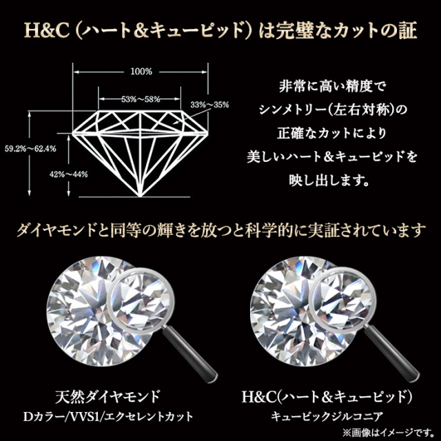 | ストーン | H&C キュービックジルコニア使用 直径約5mm 0.5ct相当 |