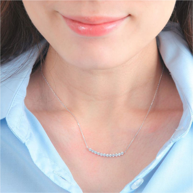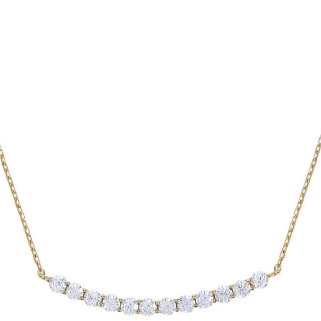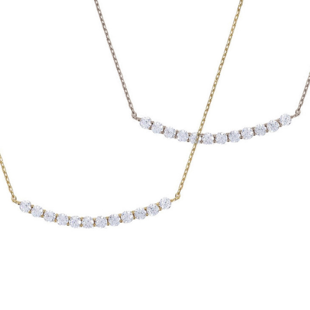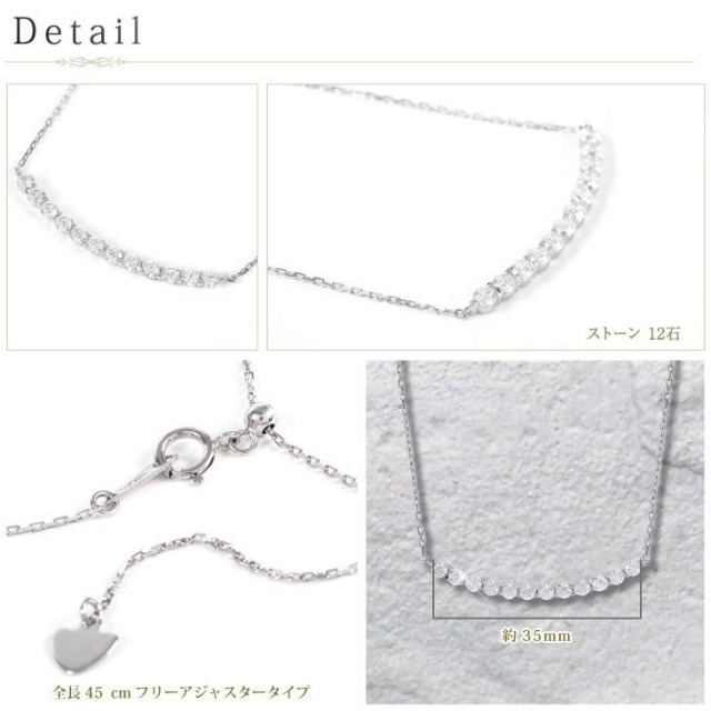 【末永く愛せるバーネックレス】緩やかなカーブを描く美しいラインネックレスは、カジュアルからパーティーまで幅広く活躍してくれます。 【金属アレルギー対応】金属アレルギーを起こしやすいニッケル・コバルト・スズ等の素材を一切使用しておりません。アレルギーをお持ちの方でも安心してご使用頂けます。※個人差がございますので全ての方に適合する物ではございません。 【無料ギフト包装】プロポーズ・誕生日・結婚のお祝いや記念日に、またバレンタインのお返し・母の日・出産後のプレゼント・お嬢様への卒業式や入学式のお祝いなどのプレゼントとしても人気の商品です。 【金性】シルバー925 プラチナ仕上げ(ロジウムコーティング)/ゴールド仕上げ(K18コーティング) 【素材:サイズ】H&Cキュービックジルコニア 直径約2mm×12石 トップ幅:約3cm 全長:約45cm あずきチェーン (無段階の調節が可能なアジャスター機能付)