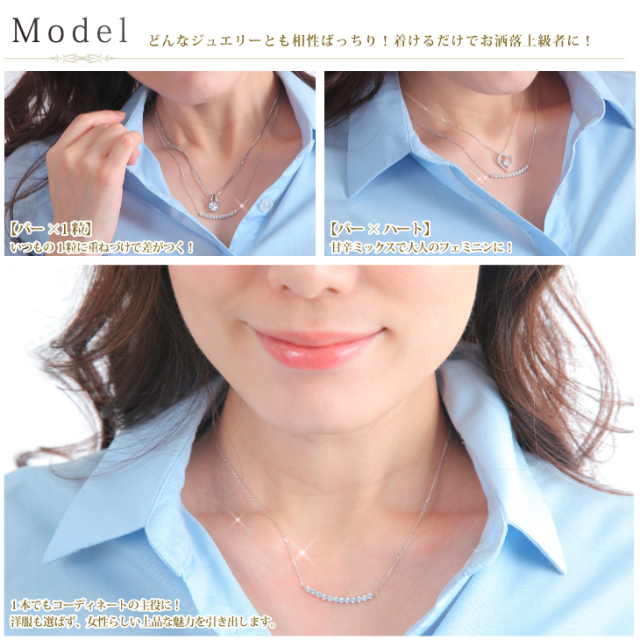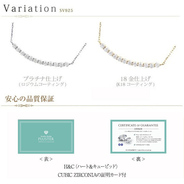 キュービックジルコニア ネックレス H&C ハート&キューピッド ジルコニア ペンダント レディース ライン バー シンプル