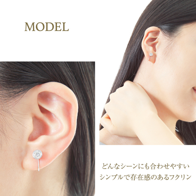 | ストーン | 「 キュービックジルコニア H&C ( ハート&キューピッド )」を使用 ネックレス:0.5ct相当サイズ(直径約5.25mm)×1pc イヤリング:直径:約5.25mm(0.5ct相当) |