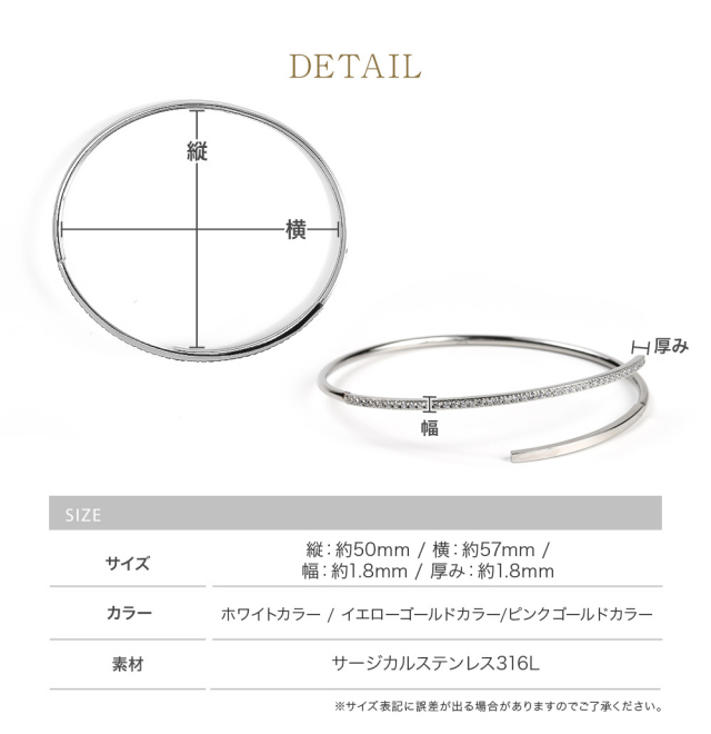 | 喜びポイント | ブランド シンプル シンプルコーデ 大人 可愛い かわいい 人気 カップル お揃い 大人カジュアル オフィス 通勤 綺麗 キラキラ おしゃれ お洒落 オシャレ トレンド おすすめ 上品 上質 プチプラで高見え アクセント 定番 カジュアル 太め 太い きれいめ ニッケルフリー ニッケルフリーブレスレット ノンアレルギー アレルギーフリー アレルギー対策 アレルギー防止 アレルギーフリーブレスレット 金属アレルギー対応ブレスレット ホワイト ピンクゴールド ホワイトゴールド ゴールドブレスレット PG WG 誕生日プレゼント サージカル サージカルステンレス316l 金 バングルブレスレット |