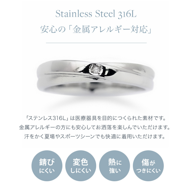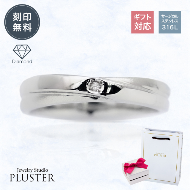 • ペアリング ステンレス リング アレルギー対応 指輪 刻印 名入れ ダイヤモンド ダイヤモンドリング サージカルステンレス 316L レディース メンズ 男女兼用 ペア カップル ステンレスリング ファッションリング シンプル お揃い 記念日 プレゼント 女性 誕生日 ギフト