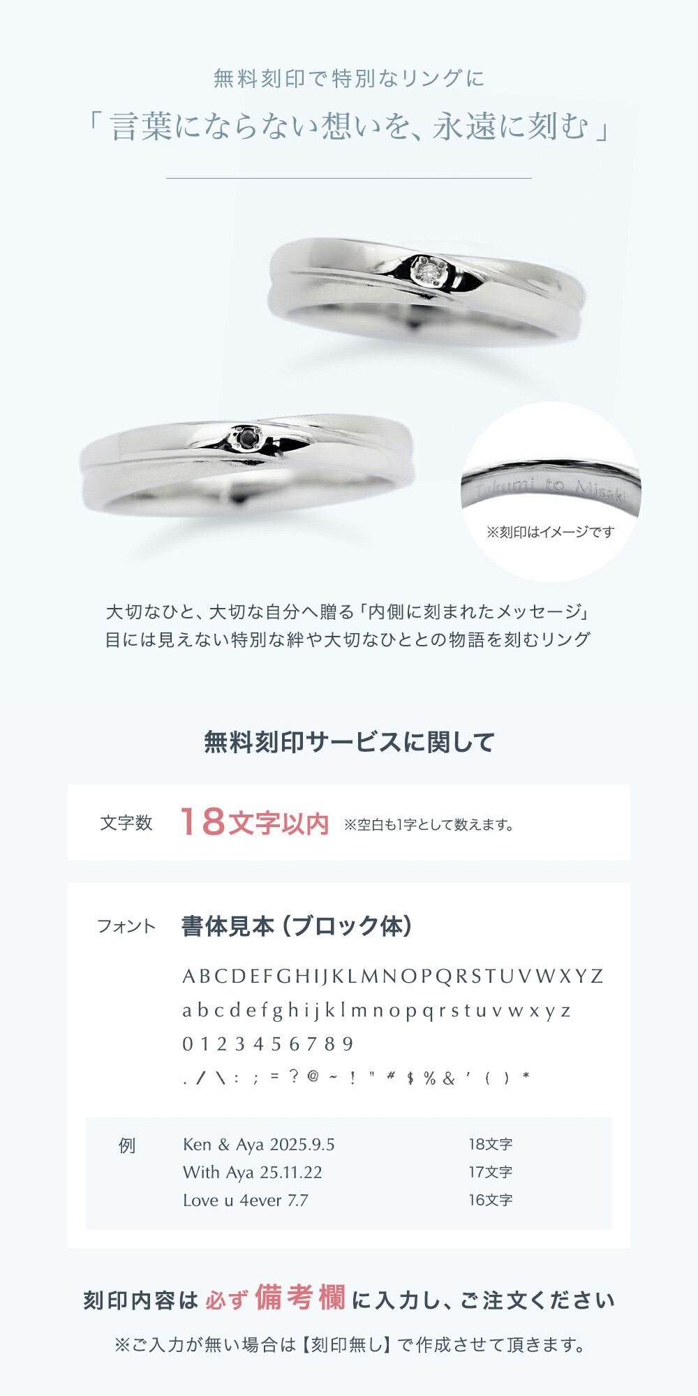 ※ペアでご購入のお客様は「男性用」「女性用」それぞれ刻印をご記載ください。
