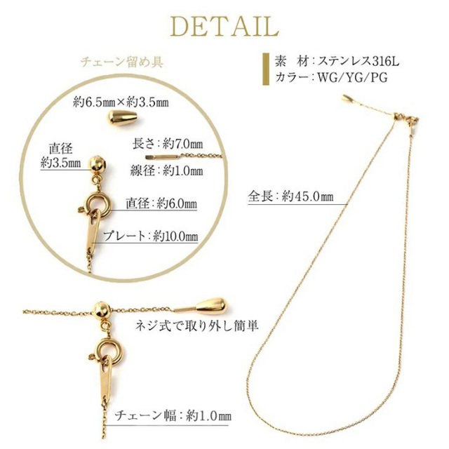 | 喜びポイント | ブランド シンプル シンプルコーデ 大人 可愛い かわいい 人気 カップル お揃い 大人カジュアル オフィス 通勤 綺麗 キラキラ おしゃれ お洒落 オシャレ トレンド おすすめ 上品 上質 プチプラで高見え アクセント 定番 カジュアル 細め 細い きれいめブレスレット ノンアレルギー アレルギーフリー アレルギー対策 アレルギー防止 アレルギーフリーネックレス 金属アレルギー対応ネックレス ホワイトゴールド イエローゴールド ピンクゴールド ゴールドネックレス プラチナ WG YG PG PT 誕生日プレゼント サージカル サージカルステンレス316l 金 ペンダントヘッド トップのみ トップだけ セット |