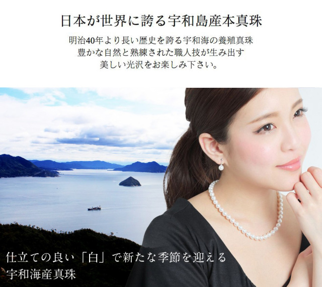明治40年より長い歴史を誇る宇和海の養殖真珠。豊かな自然と熟練された職人技が生み出す美しい光沢をお楽しみ頂けます。冠婚葬祭からパーティーシーンまで『女性の嗜み』ジュエリーです。